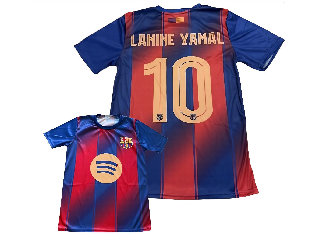 Fotbalový dres Lamine Yamal , volný střih, 100% polyester. Dres můžete objednat přes tyto webové stránky fotbal-hokej-dresy.cz (dodání 5 dní)